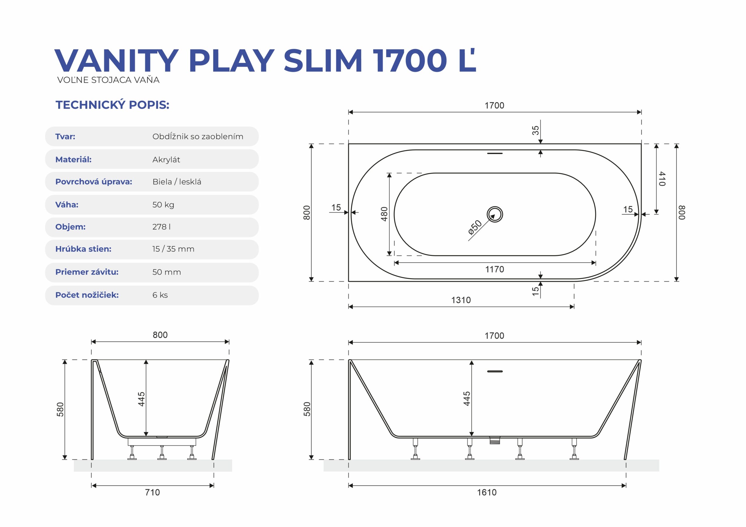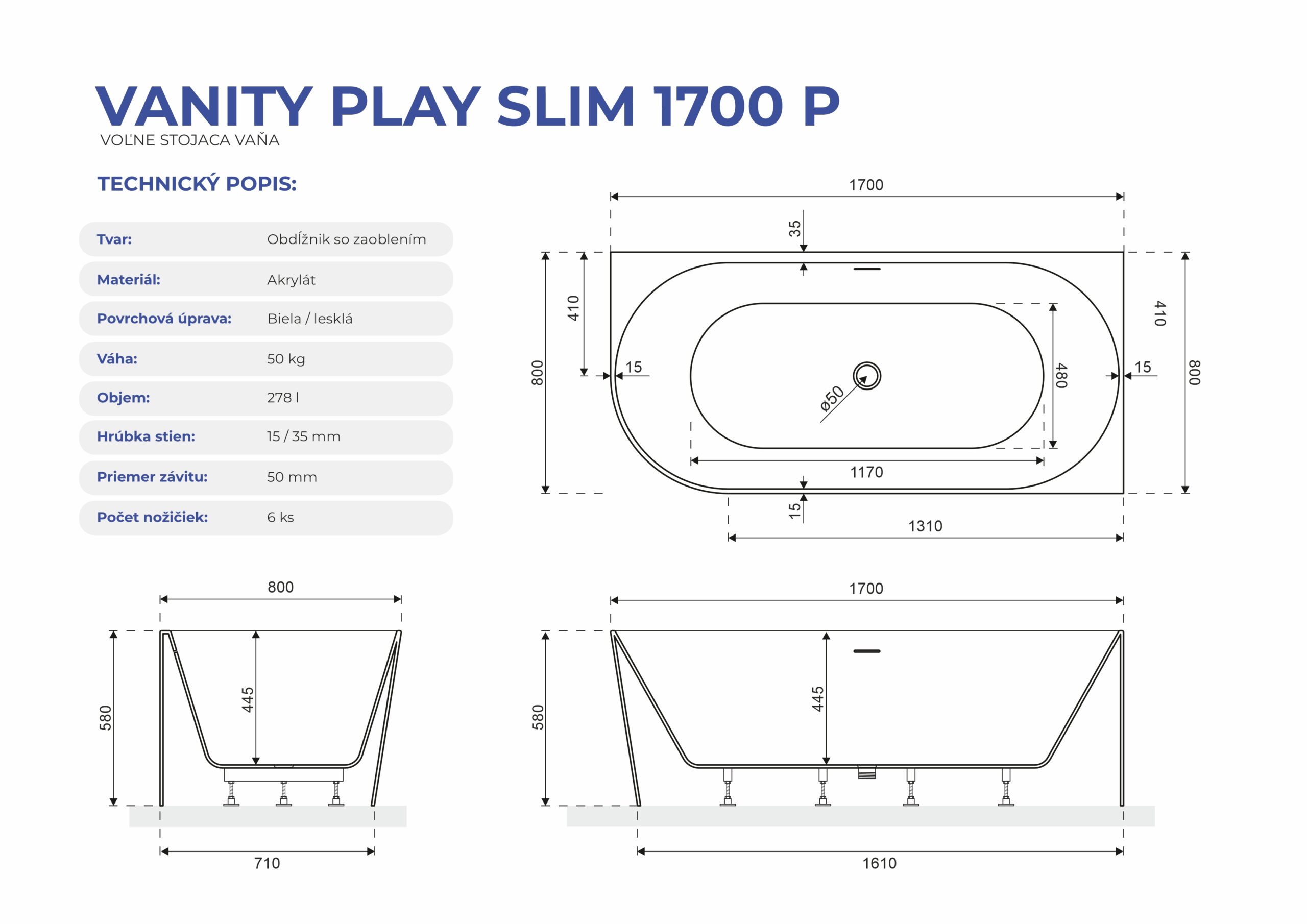 Akrylátová vaňa Aquatek PLAY SLIM je určená na zabudovanie do rohu. Vrátane odtokového systému Pop-UP. Farba: biela lesklá.
