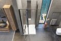 Výplne: kalené sklo TRANSPARENT hrúbka 6 mm, s antiplakovou povrchovou úpravou skla TEKNO.cal proti usádzaniu vodného kameňa.